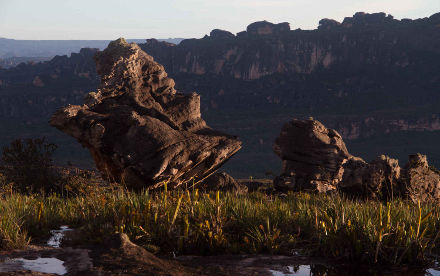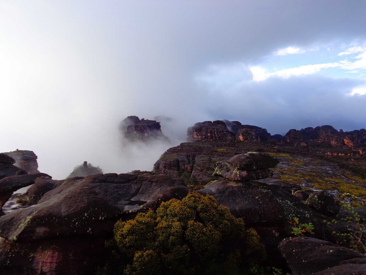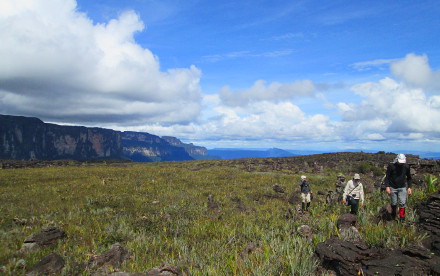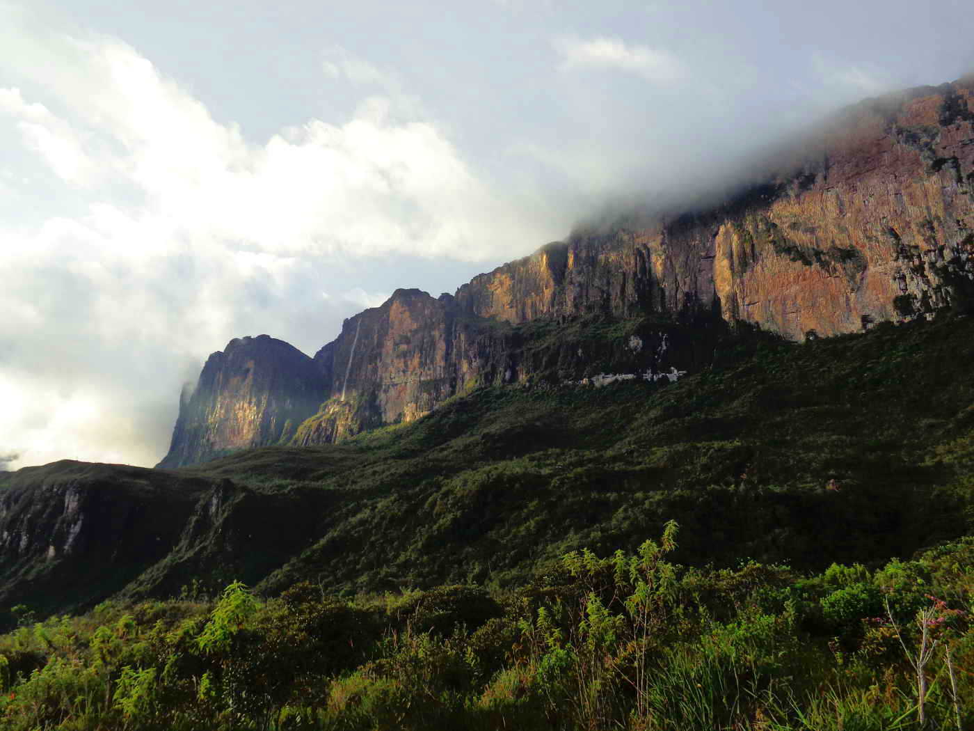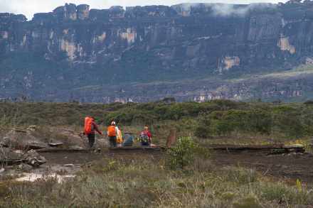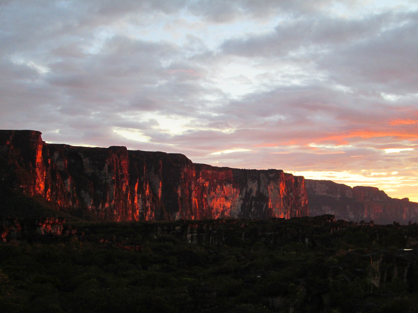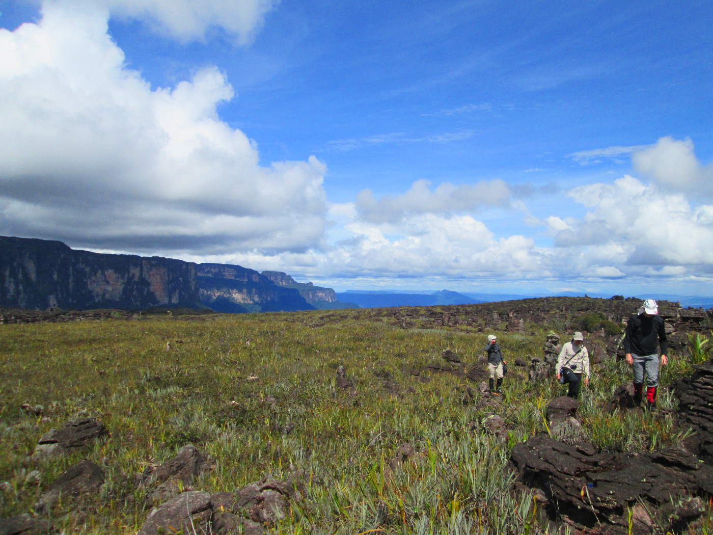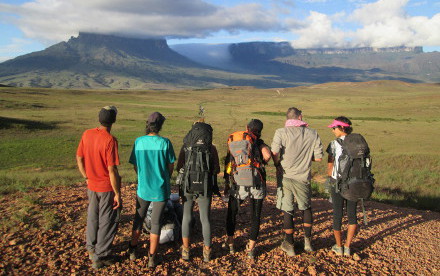 Primer día: Vuelo en avioneta desde Santa Elena de Uairén, Ciudad Bolívar o Ciudad Guayana, hasta la comunidad de Uruyen, los porteadores estarán esperando, una vez arreglado el equipo y la carga comenzaremos a caminar por unas 5 a 6 horas a través de sabana, cruzando algunos ríos pequeños y uno grande “Ocoñe”, luego una subida empinada, para llegar hasta campo Guayaraca, almuerzo en el camino, armaremos campamento y tendremos una abundante y nutritiva cena. Segundo día: Comienza el día con el desayuno bien temprano, caminaremos primero a través de sabana para luego adentrarnos en la selva tupida de las faldas del Tepuy, esta vez en subida muy empinada, con la ventaja de la frescura que proporcionan los árboles, al terminar la selva hacemos una transición de vegetación de bosque nublado a basi-montano y llegaremos a él Danto, donde almorzaremos, luego seguiremos caminando entre los arbustos y grandes piedras siempre observando el Tepuy y cuanto nos acercamos a él, hasta llegar al Peñón, donde armaremos campamento y tendremos cena. Tercer día: Este día llegaremos al tope del Tepuy, después del desayuno empezamos a caminar bien temprano, avanzaremos a través de vegetación basi-montana hasta llegar a La Paloma, punto donde tocaremos la pared, tendremos un pequeño lunch y hablaremos de seguridad, ya que comienzan varios pasos con cuerdas, que usaremos para facilitar el ascenso, llegaremos al punto más alto del Tepuy llamado libertador, porque allí se encuentra un busto de Simón Bolívar, tomaremos almuerzo y luego continuaremos caminando en la cima para llegar hasta el campamento el Oso, donde tendremos cena y pernocta. Cuarto día: Tomaremos desayuno un poco más relajados que los días anteriores, ya que este día caminaremos un poco menos, unas 4 horas, para llegar a Campo Lecho, donde tendremos el almuerzo, aquí disfrutaremos del Rio Churun durante la tarde, cuyo cauce es muy grande y calmo con grandes rocas en el medio, armaremos campamento, tendremos cena y dormiremos. Quinto día: Dejaremos el campamento armado, tomaremos desayuno, y este día es caminata sin peso, iremos a un sitio llamado La Boca del Dragón, aquí el rio Churun entra en la roca y crea un sonido como el rugido de un dragón, disfrutaremos de la vista, tomaremos almuerzo y emprenderemos la vuelta al campamento en Campo Lecho, al llegar una nutritiva cena y pernocta. Sexto día: Después del desayuno, desarmaremos el campamento y retornaremos, desde Campo Lecho hasta El Libertador, casi siempre en subida pararemos en el Campamento el Oso para tomar almuerzo, y seguiremos caminando hasta llegar al Libertador, donde tendremos cena y pasaremos la noche. Séptimo día: Tomaremos desayuno temprano y desmontamos campamento, para comenzar el descenso, otra vez los pasos de cuerdas pero bajando, pasaremos por el Campamento el Peñón pero solo para almorzar y seguiremos caminando siempre en bajada a través de vegetación basi-montana, luego selva hasta llegar a Campo Guayaraca, donde tendremos abundante y nutritiva cena y pasaremos la noche. Octavo día: Después del desayuno desarmaremos campamento y seguiremos con la caminata de retorno, a través de sabana y cruzando algunos ríos, este día en vez de ir a Uruyen, tomaremos un desvío e iremos a Kavac, donde tendremos un rico almuerzo y si nos quedan energías visitaremos la Cuevas de Kavac durante la tarde, también tendremos chance de visitarlas el próximo día en la mañana, después cena y pernocta en el campamento, al fin camas. Noveno día: El desayuno será servido en el campamento, visitaremos las Cuevas de Kavac, y tendremos el equipaje listo para esperar por las avionetas, tomaremos el vuelo Kavac – Santa Elena de Uairén, Ciudad Bolívar o Ciudad Guayana.Roraima, posee una superficie de 34,6 km2, es el más alto de los Tepuy con 2800 msnm, los relatos de los exploradores inspiraron a Sir Arthur Connan Doyle a escribir su famosa obra El Mundo Perdido, los primeros occidentales en subirlo fueron Harry Perkins y Everhard im Thurm en 1884, su ascenso no es tan difícil y los paisajes y variedad de flora y fauna endémica hacen del viaje una experiencia única e inolvidable.